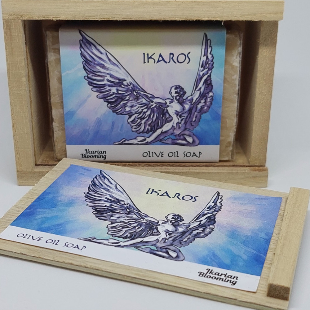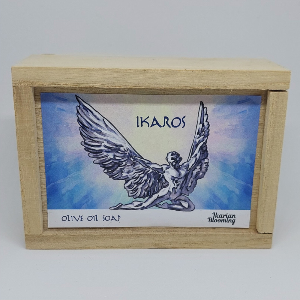 Σαπούνι ελαιολάδου " Ίκαρος " σε συσκευασία δώρου, σε ξύλινο κουτάκι, 125gr